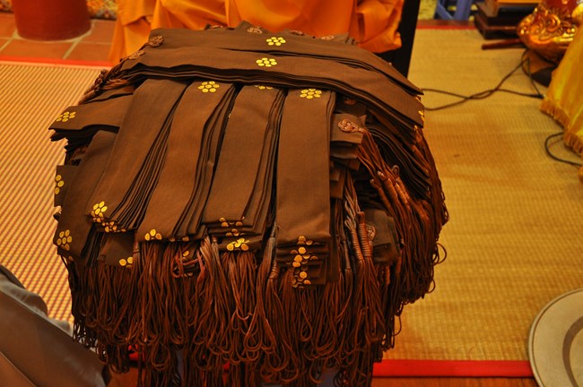Với thành quả ấy, Thầy cho phép thọ y màu nâu tiêu biểu sức chịu đựng của hành giả. Dù việc tốt hay xấu, oan hay ưng dồn dập xảy đến, tâm hành giả vẫn thanh thản và đối xử bình đẳng với mọi người, mọi việc. Phần dưới y màu nâu là chiếc đai cũng màu nâu, thể hiện ý nghĩa dung hợp được tất cả.