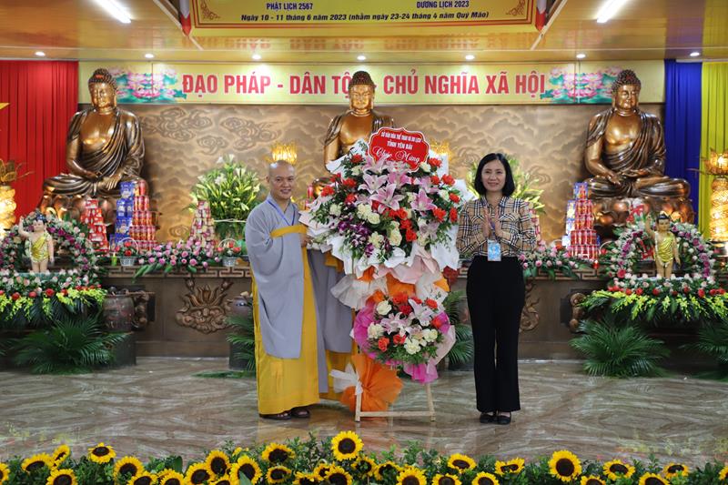 Sư cô Thích Đàm Thùy – Ủy viên TT BTS GHPGVN tỉnh Yên Bái –Trưởng Ban Tổ Chức cung tuyên Diễn văn Đại lễ Phật đản của Hoà thượng Chủ tịch HĐTS GHPGVN, Bản diễn văn gửi chư Tôn đức Tăng Ni, Phật tử cần tinh tiến tu tập, trau dồi Giới – Định – Tuệ, nêu cao pháp hành trì giới luật để trang nghiêm Giáo hội và thành tựu nhiều Phật sự nhằm bày tỏ lòng tri ân và nguyện noi theo công hạnh, sự nghiệp lớn lao của các bậc Thiền sư, Quốc sư Phật giáo Việt Nam trong lịch sử.
