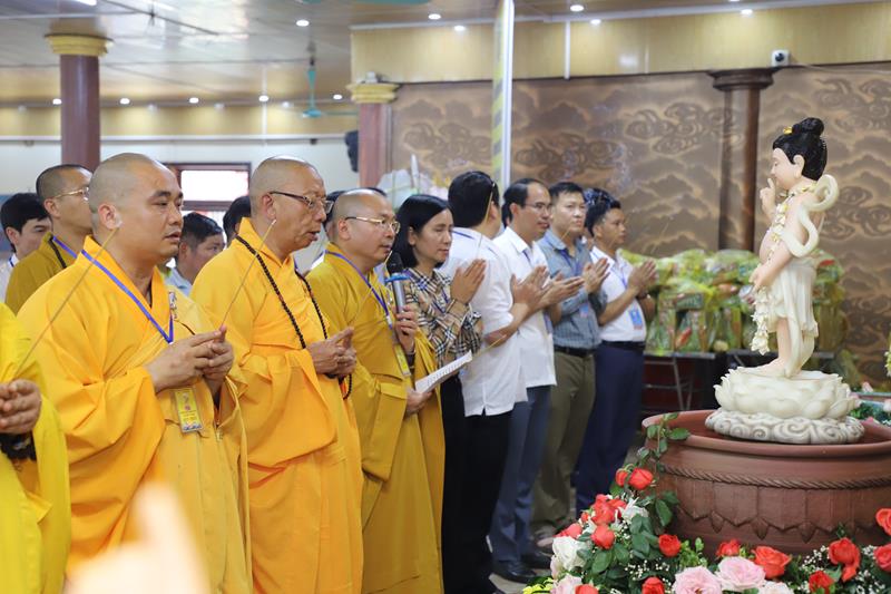 Tại buổi lễ chư Tôn đức cùng các đại biểu đã cử hành nghi lễ tụng kinh Phật đản và làm lễ tắm Phật.